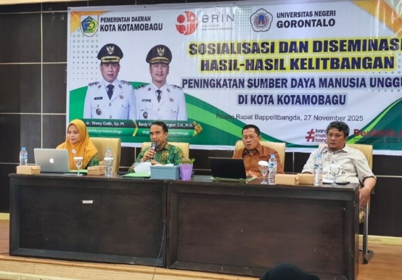 KOTAMOBAGU,newsline.id – Badan Perencanaan Penelitian dan Pengembangan Daerah (Bappelitbangda) Kota Kotamobagu menggelar Sosialisasi dan Diseminasi Hasil-Hasil Kelitbangan sebagai langkah awal memperkuat masukan dalam mewujudkan misi daerah, khususnya pengembangan inovasi dan sumber daya manusia unggul. Fokus utama kegiatan ini adalah mendorong pemerataan mutu pendidikan serta peningkatan kualitas SDM melalui program bantuan pendidikan dan beasiswa.