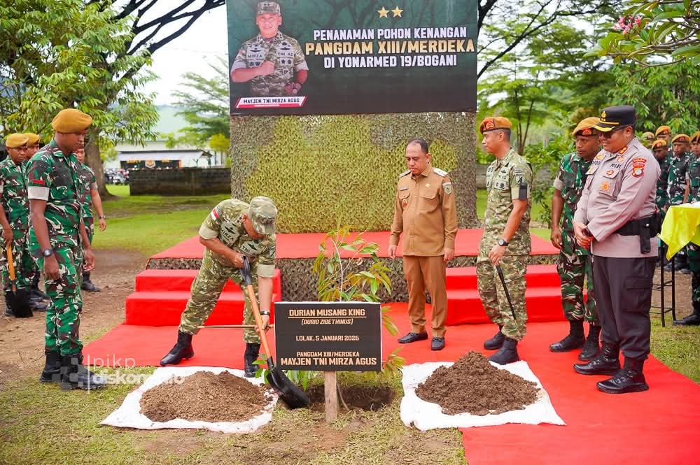 BOLMONG,newsline.id – Bupati Bolaang Mongondow (Bolmong) Yusra Alhabsyi, S.E., M.Si., menyambut secara langsung kunjungan kerja (Kunker) Panglima Komando Daerah Militer (Pangdam) XIII/Merdeka, Mayor Jenderal (Mayjen) TNI Mirza Agus, di Markas Batalyon Artileri Medan (Yonarmed) 19/Bogani, Desa Dulangon, Kecamatan Lolak, pada Senin (05/01/26).